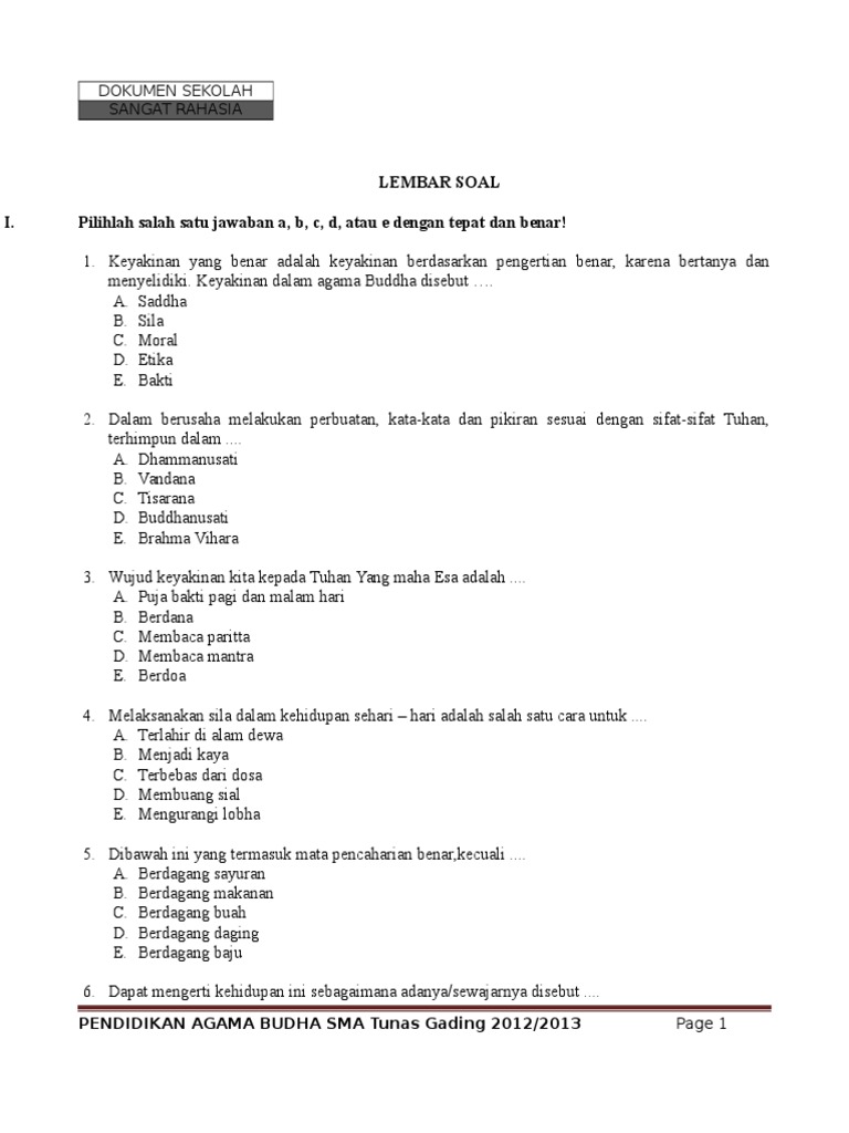 Soal sudah dilengkapi dengan kunci jawaban.